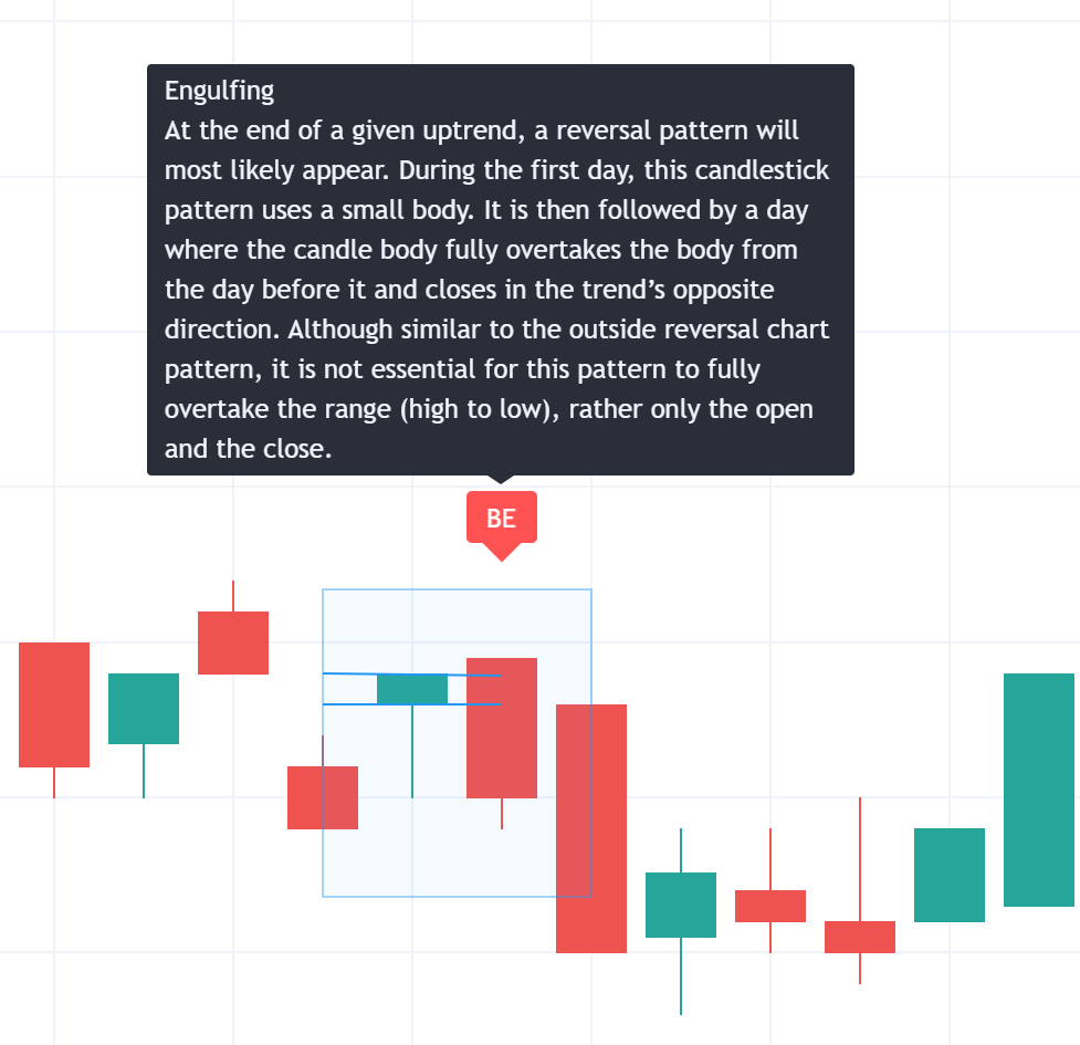 吞沒看跌形態是一種反轉形態,通常出現在給定上升趨勢的末尾,由兩根K線組成。在第一天,此K線形態使用小K線。接下來的一天,K線完全超越了前一天的K線,並以與趨勢相反的方向收盤。儘管與外部反轉圖表形態類似,但這種形態並不一定要完全超過範圍(從高到低),而只是開盤價和收盤價。