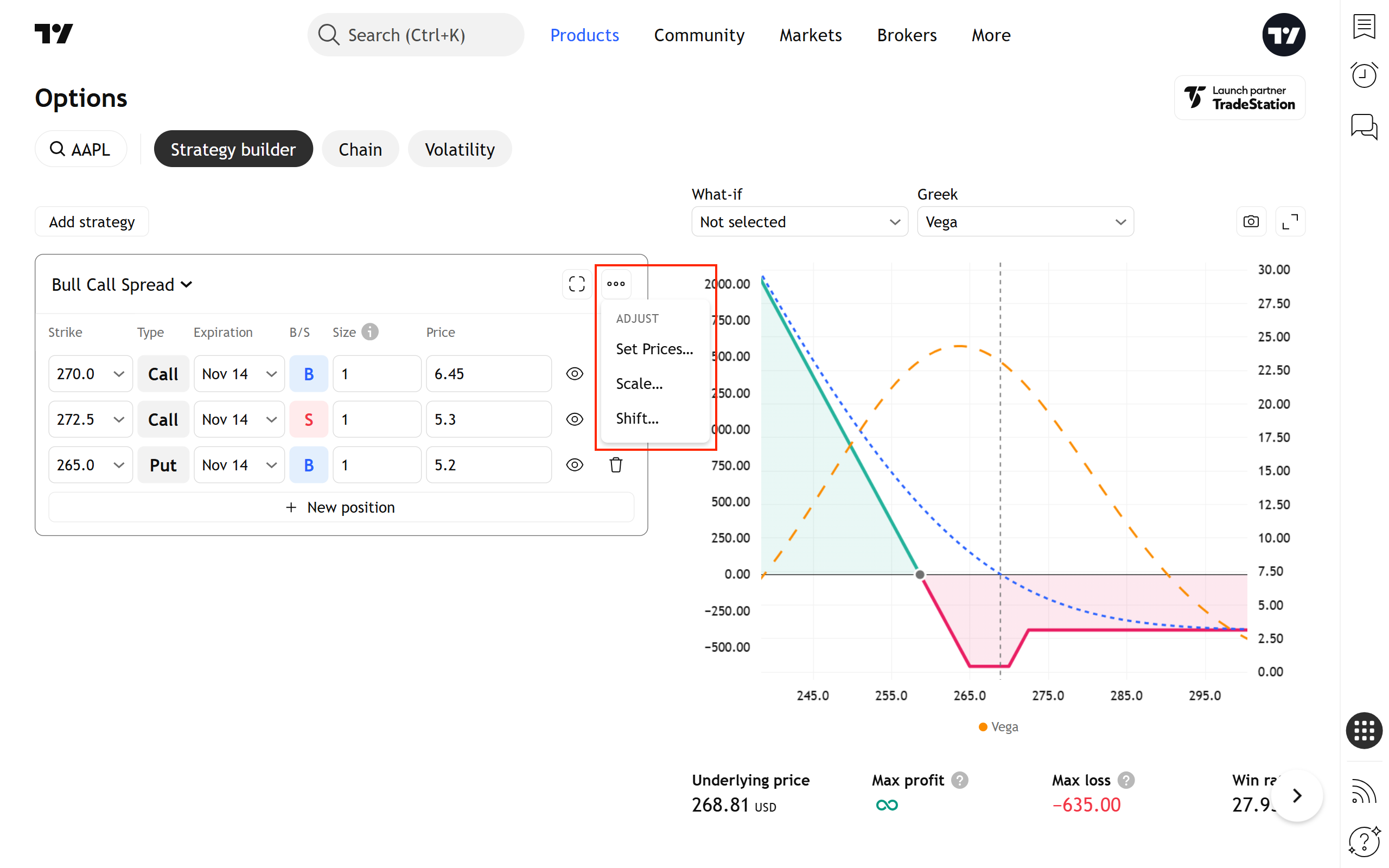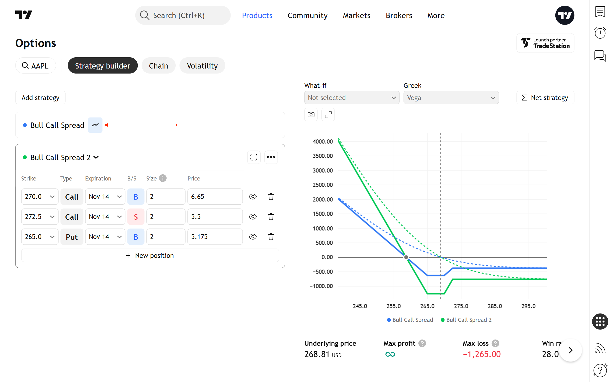 策略建構器是一款工具,您可以用它來創建任意形狀的期權價差(策略)。