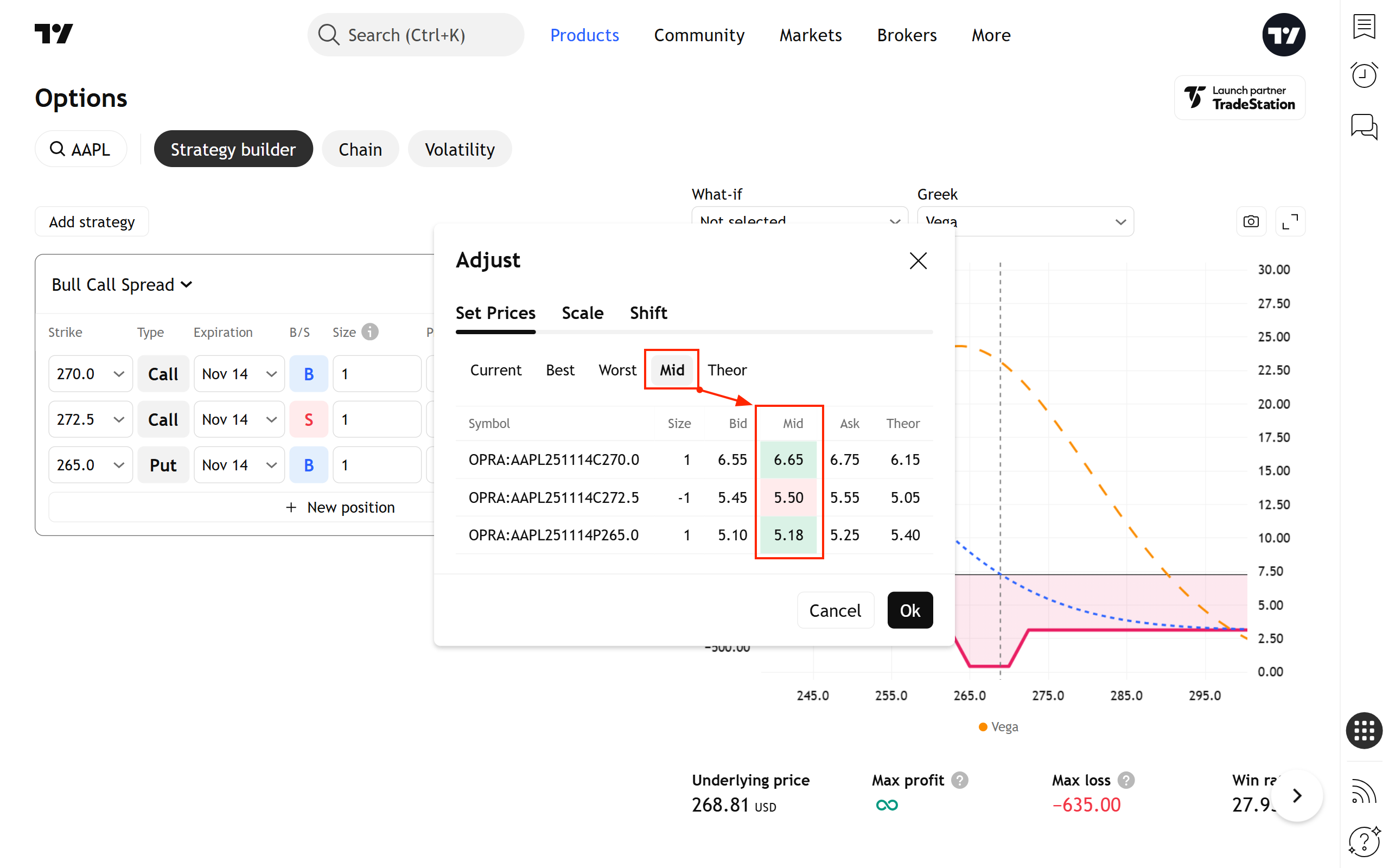 - 設定價格:為所有邊指定特定價格。價格可以基於最佳買進價、最佳賣出價、中間價或理論價