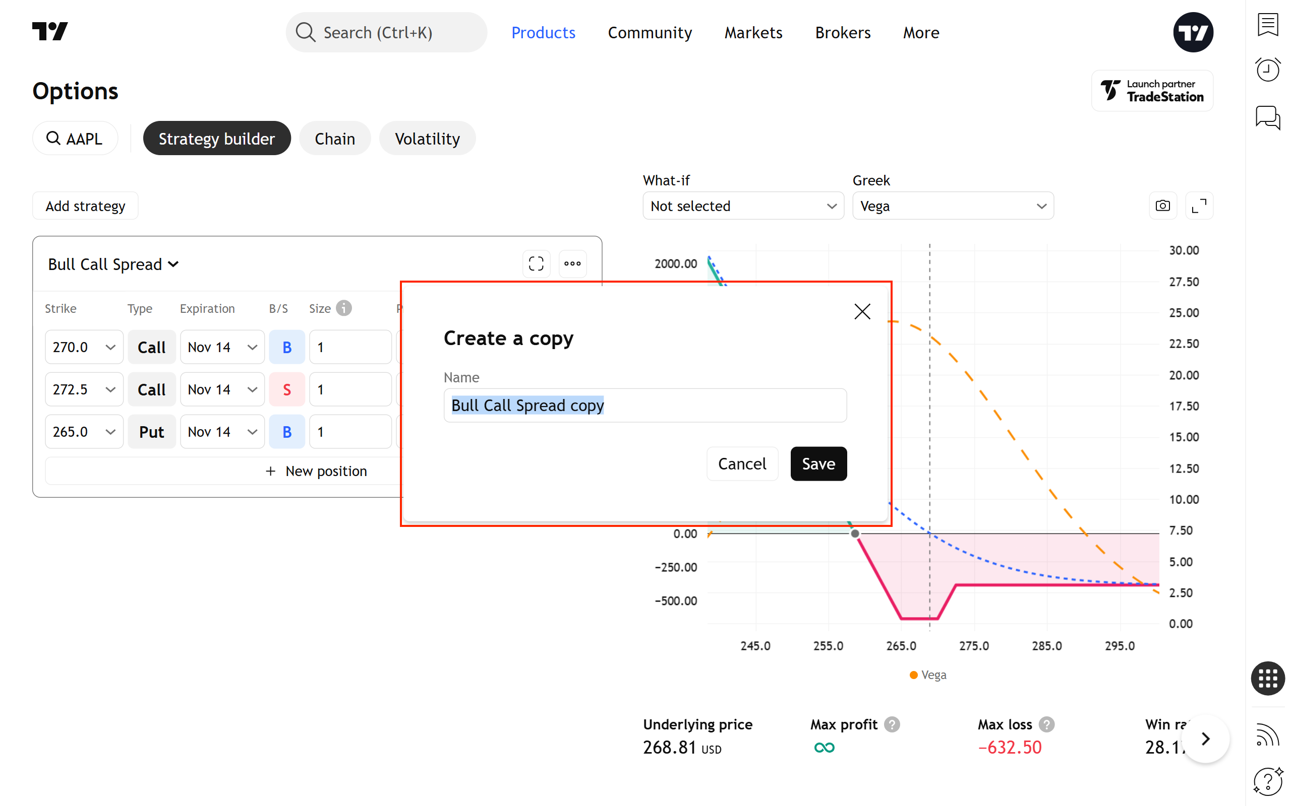 策略建構器是一款工具,您可以用它來創建任意形狀的期權價差(策略)。