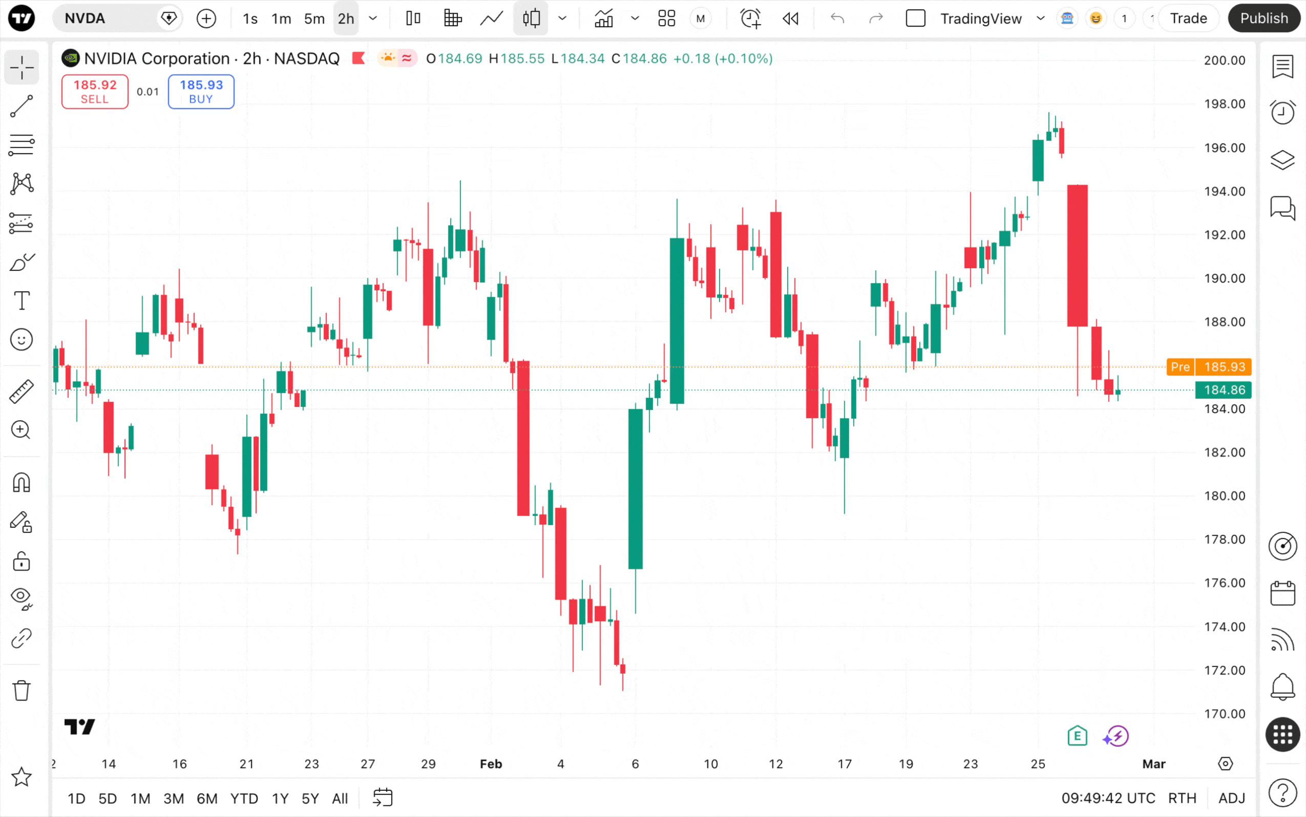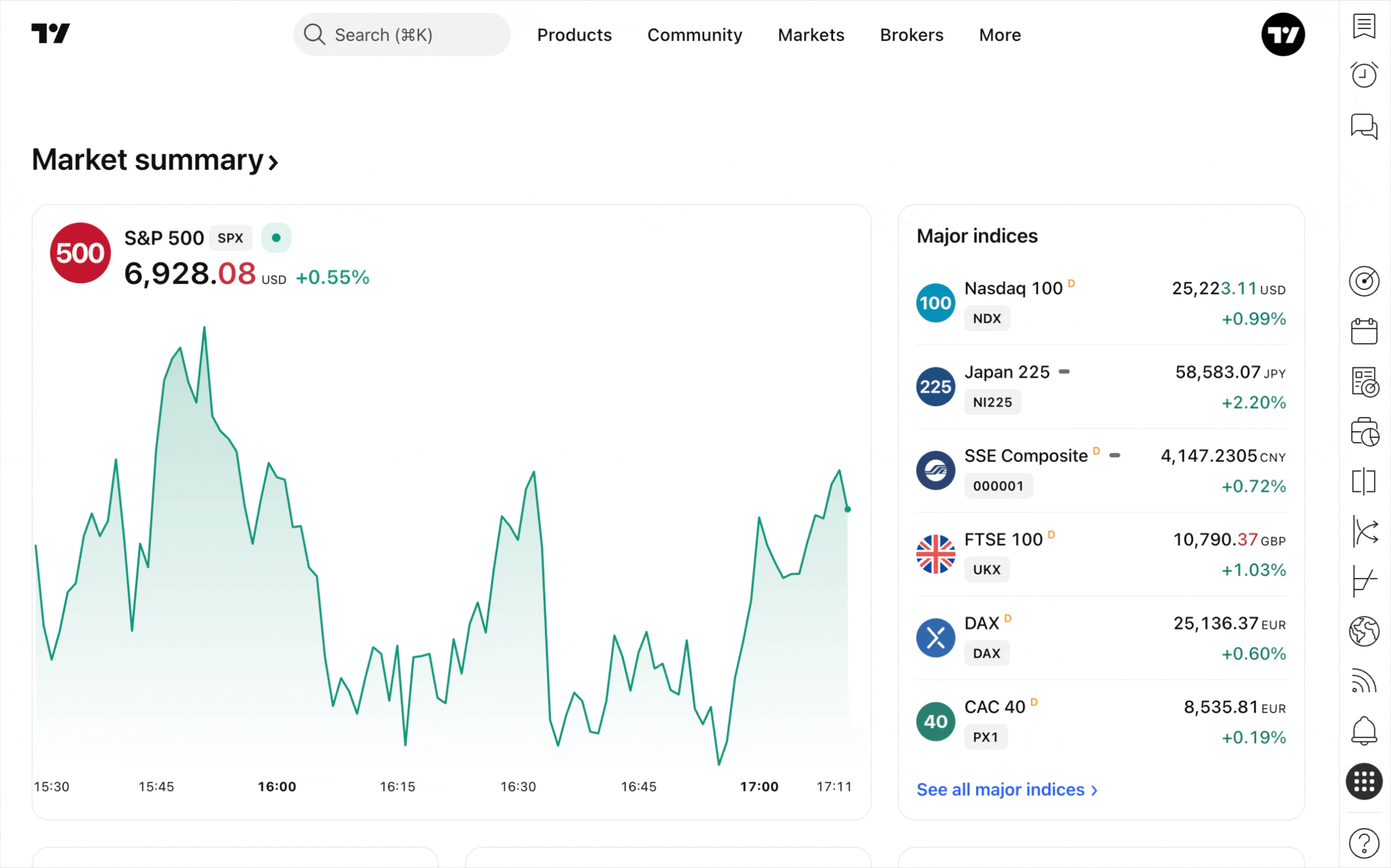 TradingView的每個工具都與其他工具相連,因此您可以同時使用它們。在超級圖表進行技術分析時,您可以在右側工具列訪問日曆。