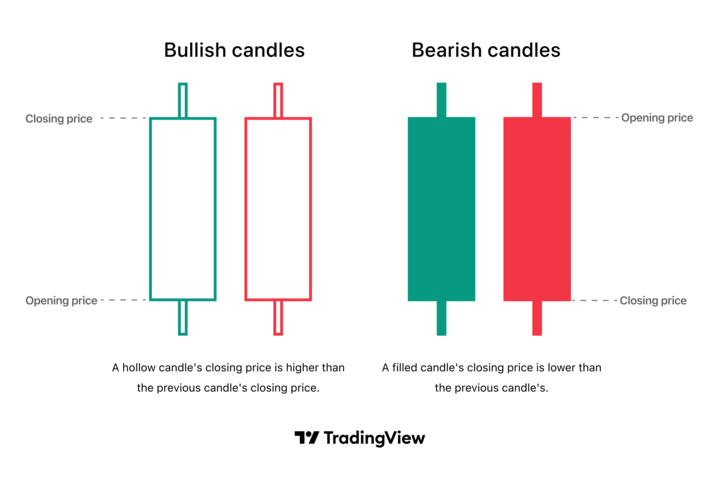 它們的實體可以是實心的,也可以是空心的。這取決於收盤價是高於還是低於開盤價。