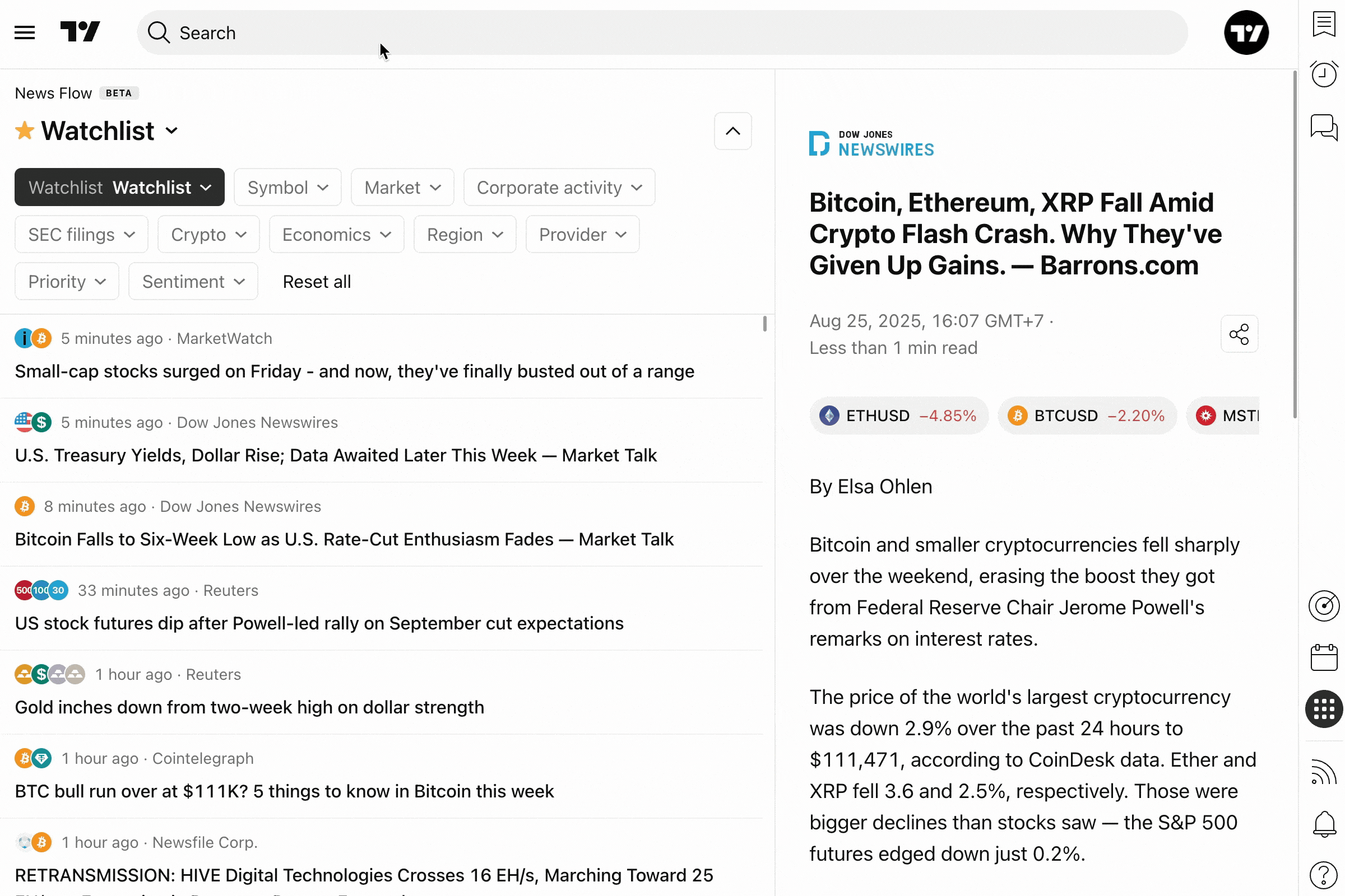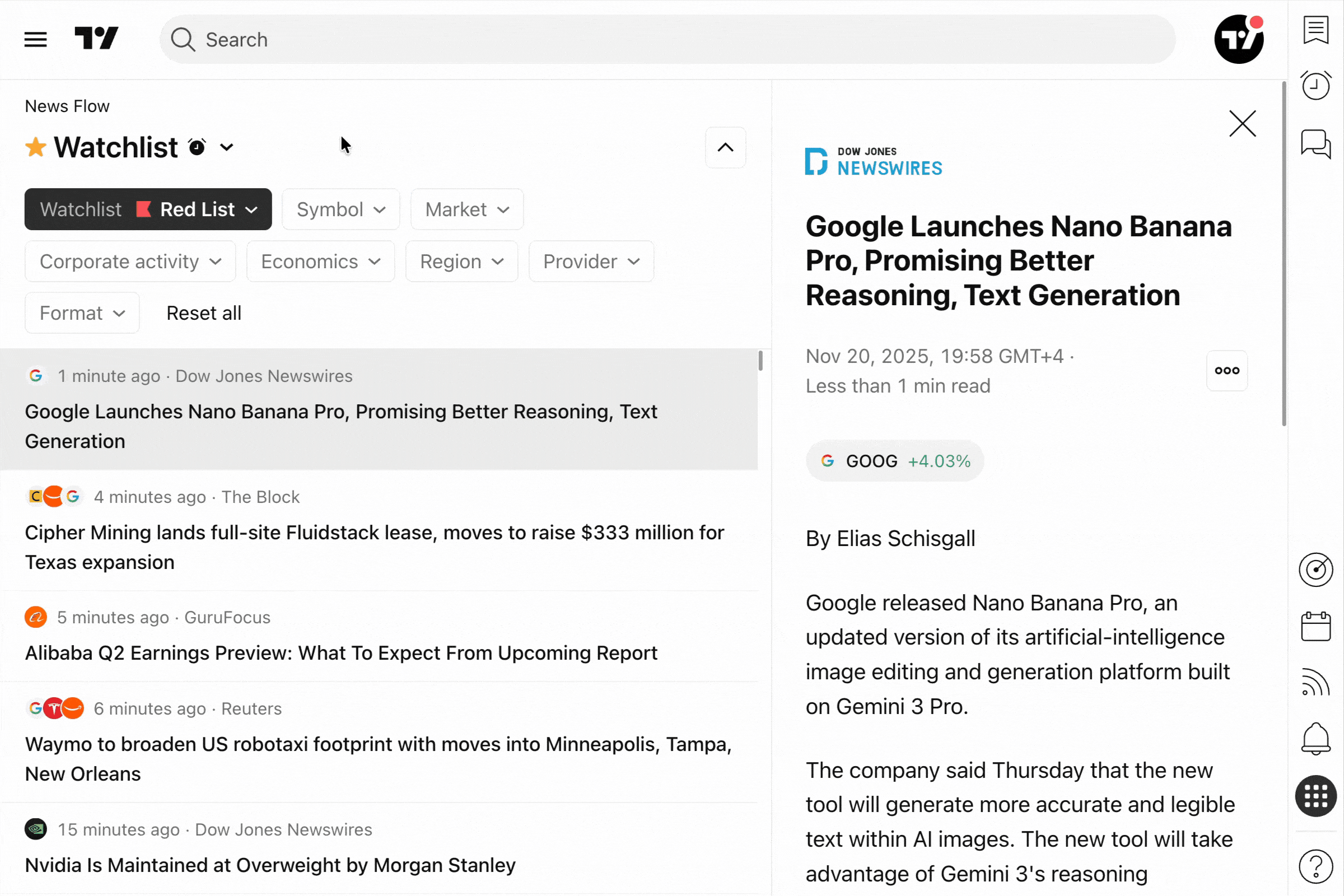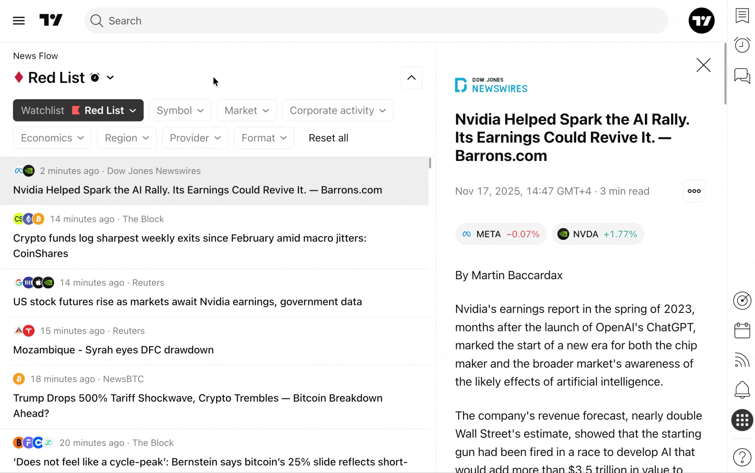 使用新聞快訊,您可以根據已儲存的新聞流建立快訊。